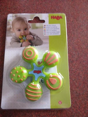 [This review was collected as part of a promotion.] This is a nice star silicone clutching teether by HABA. It is easy to grip for my daughter. It has a lot of nice textures for your baby to gnaw on. I love to keep it in the refrigerator and give it to my daughter for her sore gums and it really seems to soothe her gums nicely. I also love that it's dishwasher safe, a nice and easy way to clean and disinfect it.
