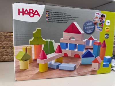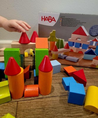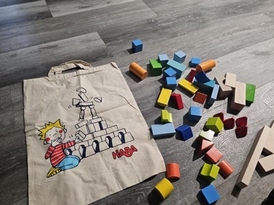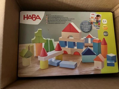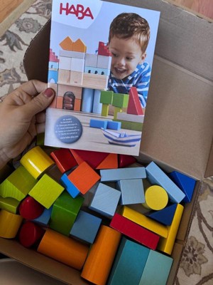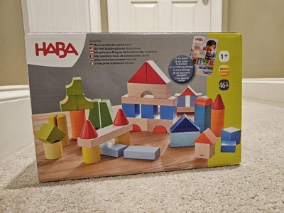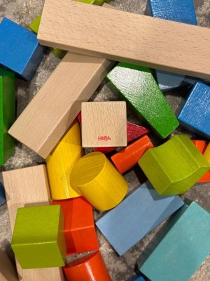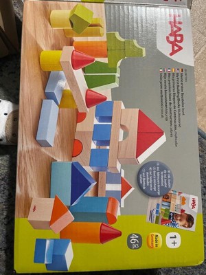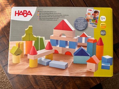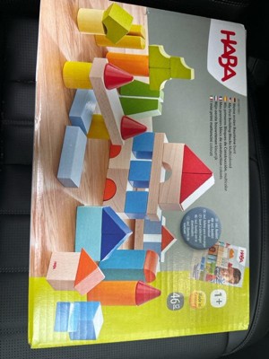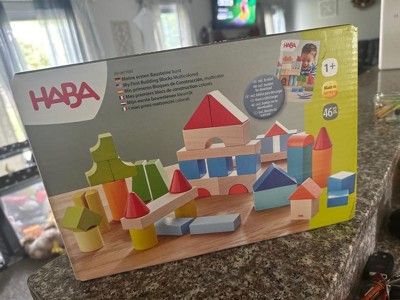 HABA Colored Wooden Building Blocks - 46 Piece Set of Wooden Toys, Stacking Toys for Toddlers 1-3 Ideal Open ended Toys, Made in Germany