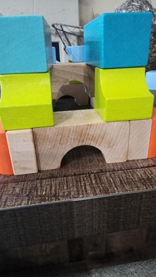 [This review was collected as part of a promotion.] My kids love these blocks! I was so surprised at the quality. They are very heavy wood blocks with vibrant colors. It came with a cute bag for storage and tons of possibilities for building and play.