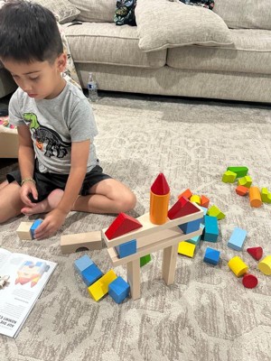 [This review was collected as part of a promotion.] I received this product complimentary from Influenster for testing purposes❤️ Thank you Influenster for giving me this wonderful experience❤️. I will rate the product based on my honest opinion !!! 🩵🩷 My son loves it 🩵🩷 The blocks are made from solid wood and are very sturdy. The set includes 46 blocks in different shapes and colors, which keeps playtime interesting and helps with learning shapes and colors👍👍 🩷🩵 If you’re looking for a fun, educational toy that will last, this set is a great choice. 🥰🥰🥰 Thanks Influenster🥰🥰🥰