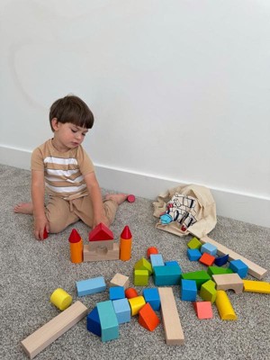 [This review was collected as part of a promotion.] The blocks are beautifully crafted with bright, non-toxic colors and smooth edges, making them safe for little hands. The variety of shapes encourages my nephew imagination, and I love that they are made from sustainable wood. The storage bag is a nice bonus for keeping everything organized. Definitely worth the price for the quality and durability