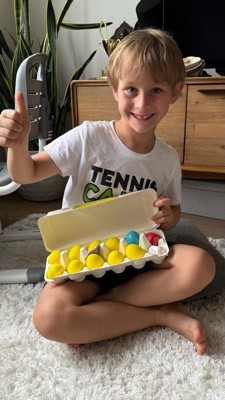 [This review was collected as part of a promotion.] My toddler had fun playing this game. Took a little to understand what to do. I love how these are durable and plastic. Size wise it is safe for younger toddler. I love the packaging of the eggs. Super cute