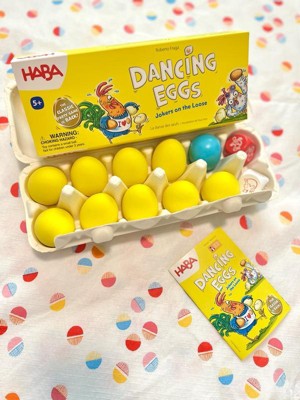 HABA Dancing Eggs: Active Kids Game for Ages 5+, Award-Winning Fast-Paced Party Games for Adults and Family with Bouncing Rubber Eggs and Dice
