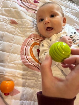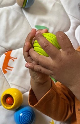 [This review was collected as part of a promotion.] These little toys for kids are the perfect size and shape. I love all the sounds and rattles inside. The colors are great and perfect shape for little hands to hold doesn’t look like anything could fit or fall into a child’s mouth.
