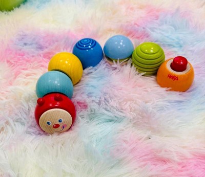 Introduce your little one to a world of vibrant colors and sensory wonders with the HABA Discovery Wooden Building Blocks Caterpillar Set. This charming set of wooden toddler toys features a rainbow-colored caterpillar, where each block offers a unique sensory experience through touch, sight, or sound. Perfect for young explorers, these stacking blocks for toddlers are designed to stimulate curiosity and foster essential developmental skills, making them a must-have for early childhood play. Crafted in Germany from sustainably sourced PEFC-certified wood, each block is treated with non-toxic, water-based stains and paints, ensuring they are safe for young hands. The high-quality craftsmanship and durability of these wooden building blocks guarantee years of fun, learning, and imaginative play. The Discovery Wooden Building Blocks Caterpillar Set promotes fine motor skills and hand-eye coordination as children manipulate and stack the blocks. These building toys for toddlers support the development of problem-solving abilities, spatial awareness, and early engineering concepts, making them ideal building blocks for ages 2-4. Made from durable, sustainably sourced wood, these blocks for kids are built to withstand the rigors of everyday play. The sturdy construction and eco-friendly materials ensure that these wood blocks for toddlers are safe and long-lasting, making them a trusted choice for parents. Perfect for home play, classrooms, or daycare centers, the HABA Discovery Wooden Building Blocks Caterpillar Set is a versatile addition to any child’s toy collection. Whether you're looking for stacking blocks for toddlers, bloques para niños, or building blocks for kids, this set delivers a delightful blend of fun, learning, and high-quality craftsmanship that will inspire young minds to explore, create, and grow. Let your child's imagination crawl into a world of discovery with these engaging wooden building blocks! Cleaning Instructions: HABA recommends using a cloth lightly dampened with warm water. If you wish to disinfect the toy with a cleaning agent, use a small amount of either water and a mild dish soap or a water & vinegar essence mix. Both options work extremely well in destroying bacteria and cleaning wooden toys. After cleaning, wipe the toy dry with a clean cloth. Remember, Wood is a natural material that soaks in moisture. Do not ever submerse wooden toys in water or place in a dishwasher. Disinfectants (even organic baby wipes), should not be used as they can damage the water based protective coatings applied to protect the stains or paints beneath.