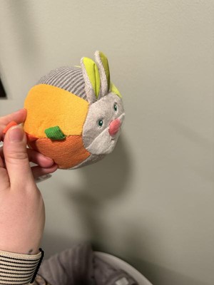 [This review was collected as part of a promotion.] This soft bunny ball with a rattle is a cute toy that was popular with my little one. It is certainly soft to touch and the fabric is durable. It holds up being thrown around and having drool on it. The rattle is a soft and sweet sound and the bunny just makes it extra cute. An awesome baby toy all around.