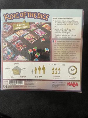 [This review was collected as part of a promotion.] I recently had the chance to play Haba's King of the Dice, and it was a blast! The game combines luck and strategy in a way that's both challenging and fun. Each player takes on the role of a ruler trying to attract villagers to their kingdom by rolling the right combinations of dice. The game is easy to learn but offers enough depth to keep everyone engaged. The artwork is charming, and the components are high quality, typical of Haba games. One of the highlights is the risk-reward aspect, where you must decide whether to re-roll for better results or stick with what you have. This keeps the game exciting and full of surprises. Overall, King of the Dice is a great game for family game nights or casual gatherings with friends. It’s quick to play, making it perfect for multiple rounds in one sitting. If you enjoy games that mix luck with strategic decision-making, you'll definitely enjoy this one!