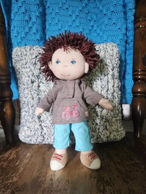 HABA Lian 12" Soft Doll - Baby Boy Doll with Brown Hair and Blue Eyes, Perfect Plush Toy for 18 Months & Up with Embroidered Face Machine Washable