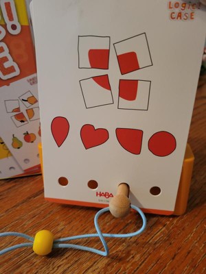 [This review was collected as part of a promotion.] Our 4 year old absolutely loves this logic game! She understood right away how it works and had so much fun holding the wooden pin and sticking it in the holes. She wanted to do everything by herself. The cards are easy to understand, some are harder which is great for challenging the brain. The cards are big enough so the pictures are clear to understand and easy to manipulate. They hold well in the card holder. The holes are the right size for the children to use the pin by themselves. Instructions are easy to understand, and they come with pictures too which is a plus for bigger kids who want to play with the little ones. The game is easy to clean up and to put back in the box. However, after a while, our daughter knew all the cards. I wish we had more cards. I would definitely recommend this game to my friends.