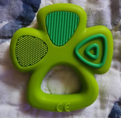 [This review was collected as part of a promotion.] This shamrock Silicone teether is awesome! It seems like my 1 year old granddaughter has been teething forever. This teether gives her some relief. She will chew on it for a long time. She loves to chomp on it!