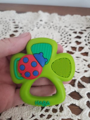 [This review was collected as part of a promotion.] We got the HABA Shamrock Silicone Teether for our 4-month old who recently started showing early signs of teething! It is the perfect size for her to hold without being too heavy, and has different texture options on both sides for her to chew on. Definitely recommend!