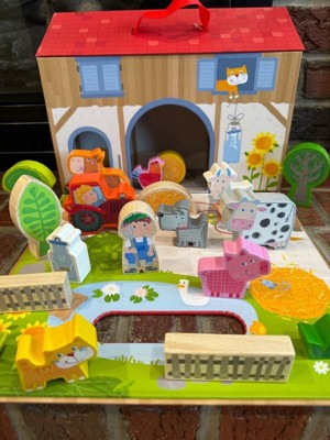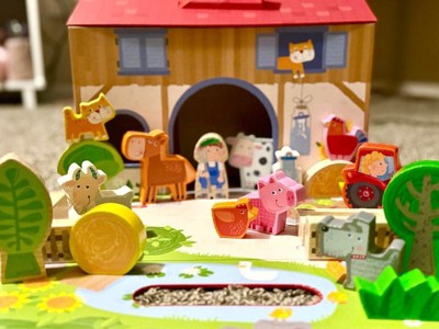HABA Play World at The Farm Play Set - Barn and Animal Farm Toys for Toddlers 1-3, Toddler Learning Toys, Preschool Animal Figurines, Made in Germany