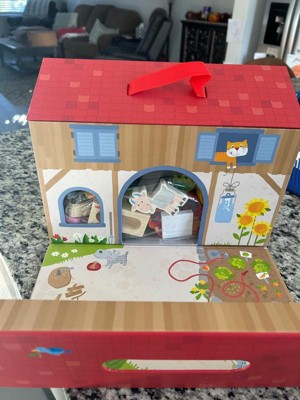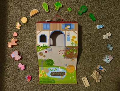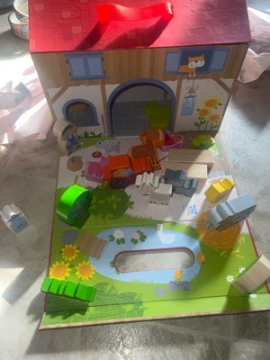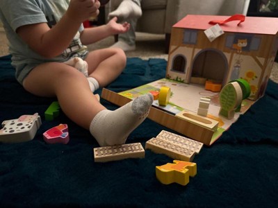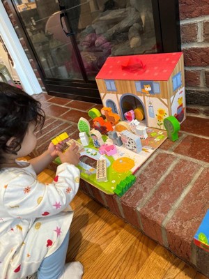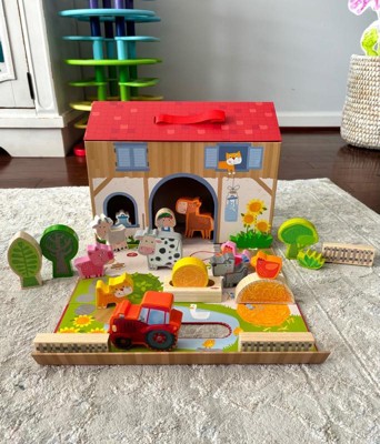 [This review was collected as part of a promotion.] Colorful, compact and educational doll house your child will love. My toddler has such a fun time playing “farm” with this toy. The doll house is easy to store, as all the pieces go inside the barn once it’s folded up. You can easily transport with the handle, too. The pieces are wooden, very smooth, and study. Toddler proof!
