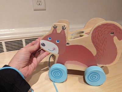 - This adorably illustrated wooden squirrel pull toy will get toddlers moving and learning while having fun.