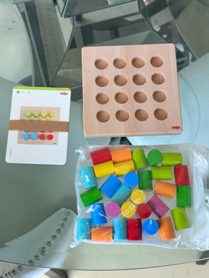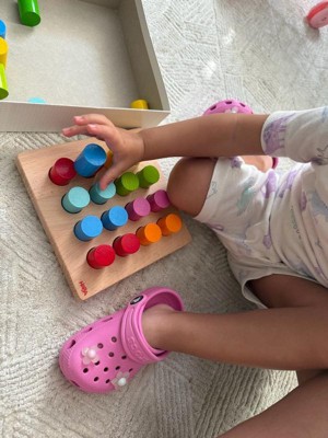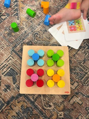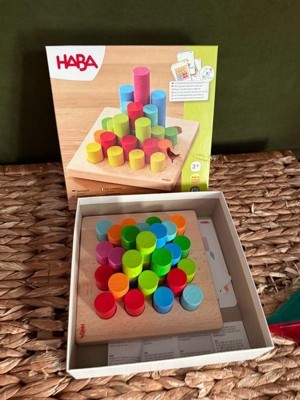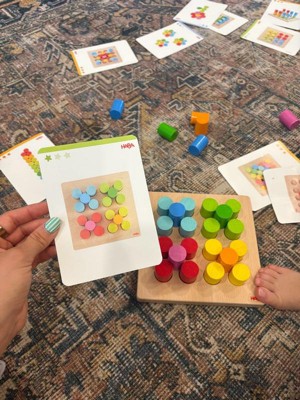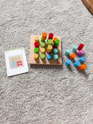 HABA Rainbow Risers - Wooden Pegboard Preschool Learning Toy with Challenge Cards