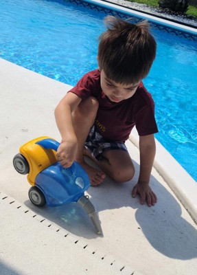 [This review was collected as part of a promotion.] My 3 year old son loves playing with the pool water, transferring it between different buckets and whatnot. Naturally this seemed like the perfect choice for him, and it certainly was. He loves it! My only real complaint is that they should have made the nozzle screw on - it just slides on and off, and my son accidentally knocks it off pretty frequently. I'm contemplating just superglueing it on.