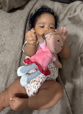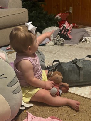 [This review was collected as part of a promotion.] My 11 month old LOVES this doll! She’s the perfect size for snuggling and is so soft. I love that I can throw her in the washer and dryer and she stays intact. We haven’t left the house without this doll since we got her!