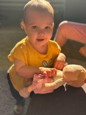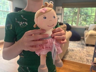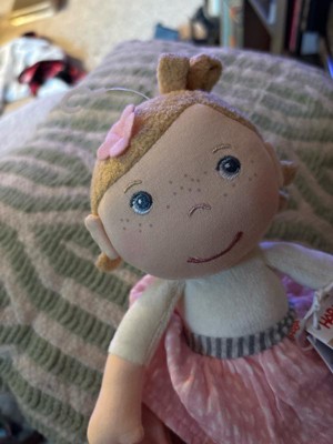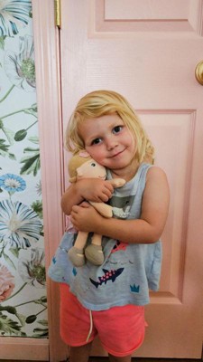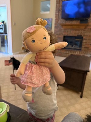 [This review was collected as part of a promotion.] This is the cutest little cloth soft doll! My 10 month old loves her! She immediately grabbed her and started snuggling her. She’s the perfect size for little hands, I liked that the tag was easy to remove and there are no choking hazards.