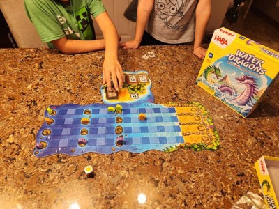 [This review was collected as part of a promotion.] My boys love having a family game night and Water Dragons will be a regular addition. The game is easy to set up and easy to understand. It is for ages 5+ which seems to be spot on. My kids are ages 6 & 8 and they both immediately understood the game play. It is pretty simple, roll the dice up to 3 times, choose the card that corresponds to the color on the dice, and move your pieces accordingly. It is more of a "luck of the roll" game rather than skill, although decisions still must be made when using the 2x card or the star card. The game allows the player to roll up to 3 times, but the decision can also be made to take one of the 1st two rolls, or chance a 3rd, and possibly bad roll. I really loved the quality of the game pieces, as they are wooden carved dragons and bright board game colors. It wasn't a game that dragged on, and I would say we finished each game in about 30 minutes. My kids love the game and I definitely recommend it to both kids and adults.
