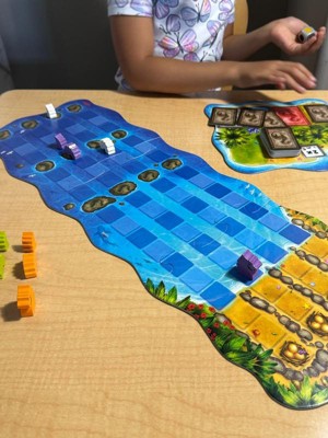 [This review was collected as part of a promotion.] This was a fun little game that was simple enough for my 5.5 year old to catch on to. The pieces are wooden and the board and dice are well made and quick to set up to play. It can be a little frustrating for younger kids to not be able to move their pieces Ed forward for several turns as the dragons bodies have to stay in order, but the game pace moves pretty fast. I think overall it took us 15 Minutes to play a round. Our whole family will like continuing to play Water Dragons.