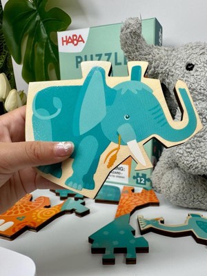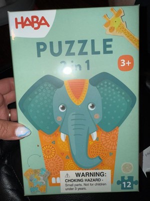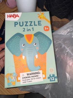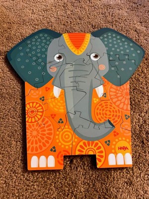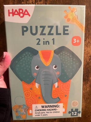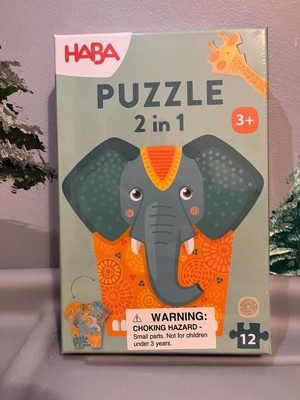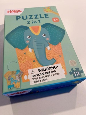HABA Wooden Puzzle Elephant - 2 in 1 Reversible Puzzles for Kids Ages 4-6, Durable Educational Toys and Wooden Montessori Toys