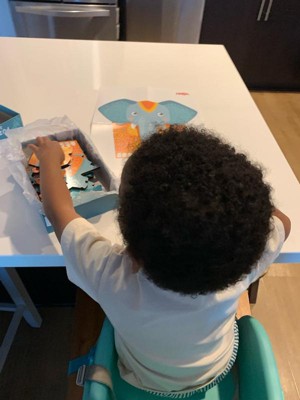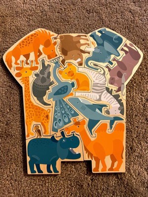 [This review was collected as part of a promotion.] My 3 year old was super excited to get this puzzle. The variety animal is what I would consider level 1 and the elephant side is an increase in difficulty, to further increase difficulty you can take the “cheat sheet” away. I love that this includes a true to size picture to help the younger kids with placing pieces. I took away one star because the pieces would often pop out of place when my son was trying to place another piece.