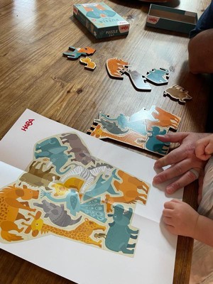 [This review was collected as part of a promotion.] This HABA puzzle was very durable and fun to put together with my toddler. I especially enjoyed how it was double sided which extended playing time and contributed to the wow factor. Very easy to assemble as well!