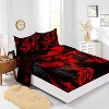 Hachikiko Queen Red Rose Sheet Set - 4PC Gothic Floral Bedding with Fitted Sheet & Pillowcases