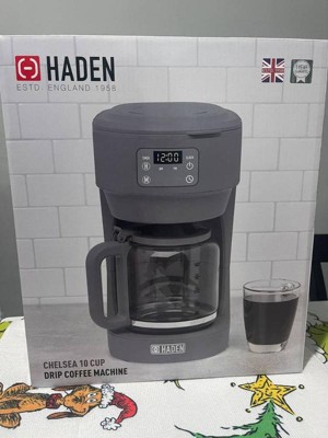 Haden Chelsea Coffee Machine, 10 Cup Programmable Drip Coffee Maker with Auto Shut-Off Function and Keep-Warm Function, Grey & Chrome