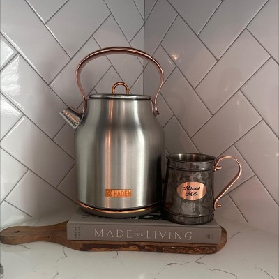 Haden Heritage 1.7 Liter Stainless Steel Electric Kettle Bundled with 12 Cup Drip Coffee Maker, Coffee Machine with Auto Shut-Off, Steel & Copper