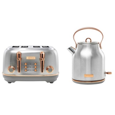 Inspired by British homes, architecture, and landscapes, this HADEN Heritage toaster and kettle feature a chic Ivory & Copper color scheme.
