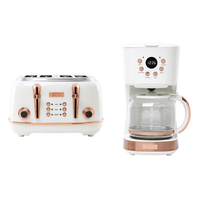 UPGRADE YOUR MORNING: Elevate your kitchen with this Heritage toaster and Haden coffee maker, where classic style meets contemporary living