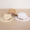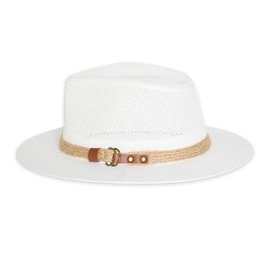- Designed with a chic jute hand band and vegan faux leather buckle detail, it delivers a sophisticated finishing touch to its versatile fedora style.