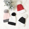 - Ribbed knit designed featuring a contrasting cuff and faux fur pom