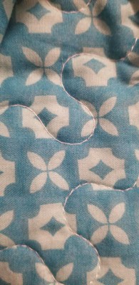 [This review was collected as part of a promotion.] This quilt set gives my bedroom the modern and updated look that I have always wanted! It is a three-piece set that includes a quilt and two pillow shams. I love that both the pillow shams and the quilt is reversible. One side of the quilt has a wave pattern in vibrant colors of turquoise, orange, and white and the other side is a solid turquoise color with “x and o’s” designs. I usually wash every new quilt or comforter before using it the first time because they are stiff and uncomfortable. I was so pleased that this quilt set came already pre-washed, soft, and ready to go on my bed. I love how comfortable it feels when I snuggle under it!