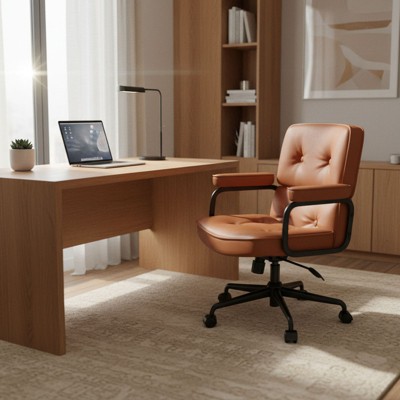The Hal Desk Chair is a stylish and ergonomic piece that effortlessly blends modern design with practical functionality. Its sleek lines and clean silhouette create a sophisticated and contemporary aesthetic that is sure to elevate any office space. Upholstered in smooth vegan leather, the chair offers both comfort and durability. The adjustable seat and rubber wheels ensure optimal comfort and mobility throughout your workday, making even the longest hours feel less like a grind. With its perfect combination of style and functionality, the Hal Desk Chair is sure to make your 9-to-5 more enjoyable and productive.