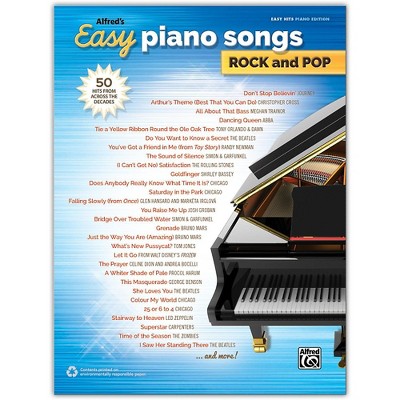 The 12 Hit Songs for Easy Piano songbook gives the chance to play favorite chart-topping songs. Perfect for pianists looking to advance their skills, this collection features 12 hits from today's most popular artists like Olivia Rodrigo, Taylor Swift and Billie Eilish. 'll find simplified arrangements in an easy-to-read format, complete with lyrics and chord names to help follow along. Practice the syncopated rhythms and rolling arpeggios of "Can't Catch Me Now" or the expressive melodies of "Flowers." Once 've mastered the songs, 'll be ready to impress friends and family.