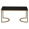Half Moon Rectangular Coffee Table Black Oak Wood Grain and Gold Metal