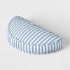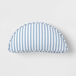 Add cosmic charm to your decor with this Half Moon-Shaped Round Stripe Pillow from Threshold™. This novelty pillow is designed in a crescent shape with a 4-inch gusset and is adorned with a blue-and-white stripes for a standout look. Featuring a 100% cotton exterior and a well-filled interior, the throw pillow is perfect for layering on your bed, brightening up the sofa, or adding some stellar style to your reading nook.
