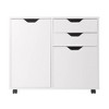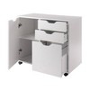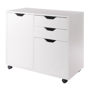 The Winsome Wood Halifax 2-Section Mobile Filing Cabinet can transform a home office or any room where you need easy-access storage. Use the lower of its three gliding drawers as a filing cabinet with removable metal rods to hang letter-sized files, or remove the rods and have an extra-deep drawer for bulky storage. The cabinet has an adjustable (or removable) shelf that adjusts to 3 different height positions, ideal for keeping your home office files, printer paper, charging cables, and office accessories neat and organized. And with its clean, simple design, and easy-to-use cut-out handles, the Halifax will work just as well in a walk-in closet to expand space for clothing, shoes, handbags and accessories. Or use it in a child's bedroom to reduce the clutter of toys and sports gear. The flexibility of the filing drawer configuration and adjustable/removable shelf make it adaptable to a variety of storage needs. The unit has five wheels, two of which lock, for easy mobility as well as a way to keep it securely in place. The cabinet is made of sturdy composite wood in a clean white finish that is sure to brighten any space. For additional storage, combine the 2-Section Filing Cabinet with other organizers from the Winsome Halifax collection. This item conveniently ships in 1 box and is ready for assembly. Replacement part request can be submitted directly to the manufacturer within 60 days from date of purchase.