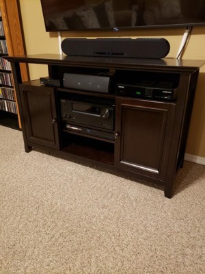 We were looking for a wood TV stand that had multiple shelves to house all of our TV equipment. This stand not only does that but it is a very, very nice piece of furniture. I would definitely recommend it to anyone looking for a TV media stand.