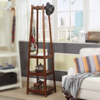 Hall Tree with Shoe Bench and Hanging Rod, 3 in 1 Coat Rack with Storage Shelves and Removable Hooks, Entryway Bench Storage Closet Organizer Rack