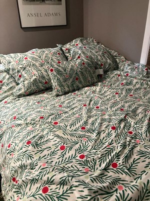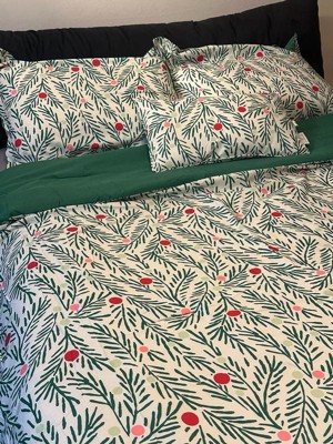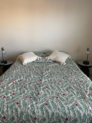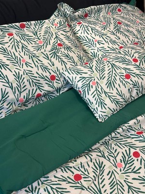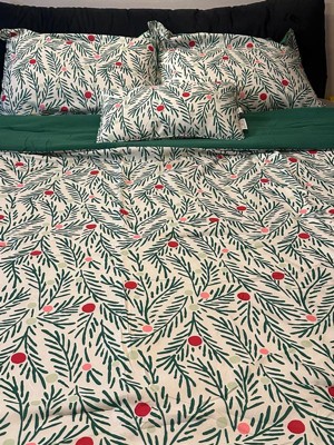 Spruce up your bed for the season with the Hallmark Green Branches Holiday Comforter Set. A cheerful addition to your bedroom or guest room décor, this holiday comforter is decked out in leafy branches with pink, red, and green berries for a festive pop of color. Made from super-soft, wrinkle-resistant microfiber, this medium-weight comforter is perfect for cuddling up and keeping out the chill. Each set includes a comforter, shams (one sham in Twin), and a decorative pillow to complete the look. Mix, match, and make your home extra merry with more Joy to Your World holiday sheets, throws, and decorative pillows from Hallmark (sold separately).
