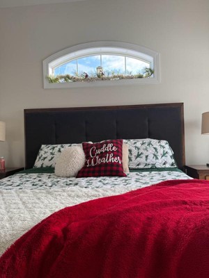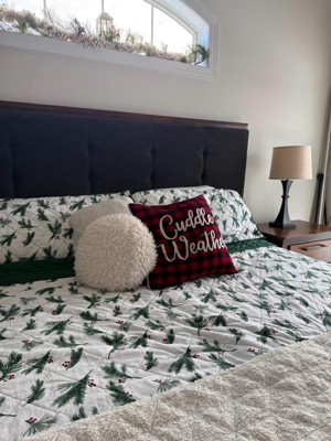 Bring wintery charm indoors with the Winter Berries Holiday Quilt Set from Hallmark. Featuring delicate green branches and bright red berries on a snowy white background, this diamond-quilted set adds a festive, nature-inspired touch to your bedroom or guest room décor. The lightweight quilt is made with printed cotton flannel on one side and solid green polyester flannel on the other—both brushed for an irresistibly soft feel that’s perfect for snuggling through the season. This 3-piece bedding set includes a quilt and coordinating pillow shams, and is machine washable for quick and easy care. Mix, match, and make your bed extra merry with coordinating decorative pillows from Hallmark (sold separately).