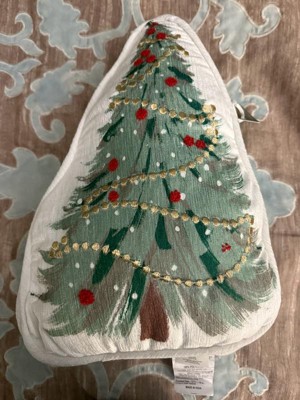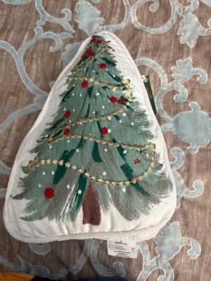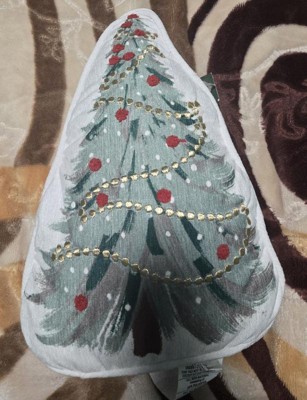 Add cheer (and a little shimmer) to your space with the Tree Shaped Holiday Pillow from Hallmark. This festive Christmas tree pillow is all decked out with red bouclé ornaments and metallic gold embroidered string lights for a twinkling touch. Whether you're curling up on the couch for a holiday movie marathon, adding a cheerful accent to your bed, or wrapping it up for someone special on your list, this pillow brings cozy Christmas charm to any space. Each 12 x 16-inch decorative pillow is sold separately—mix, match, and make your home extra merry with more Hallmark holiday décor!