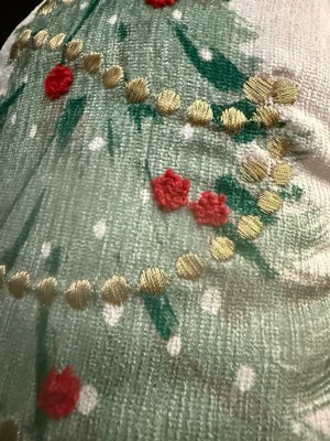 Christmas tree pillow is subtle. Pillow is designed in the tree shape and is beautifully embroidered. Blends perfect with my decor