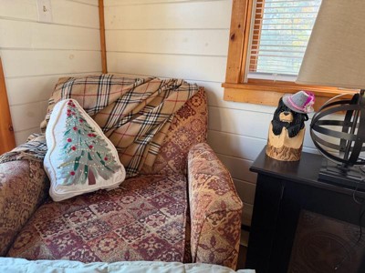 [This review was collected as part of a promotion.] My MIL absolutely loved this cute, Christmas tree pillow. It looked right at home in their rustic den. The embroidered accents and fun tree-shape were a nice touch. She can’t wait to put it out during the holidays season.