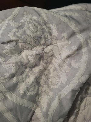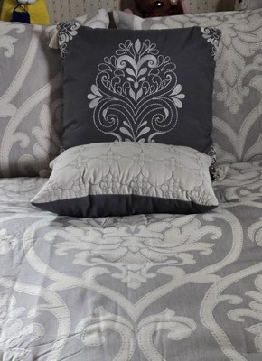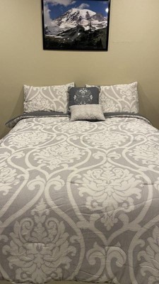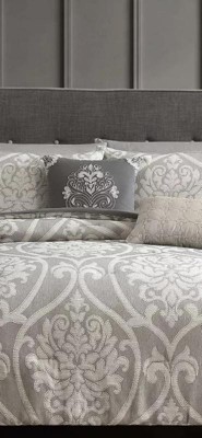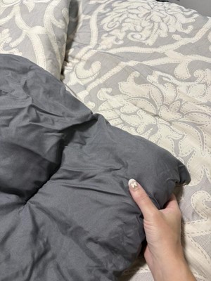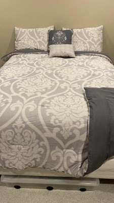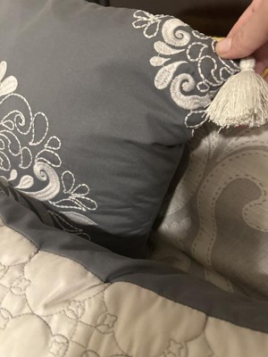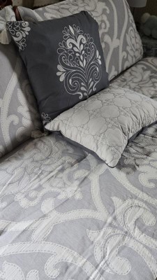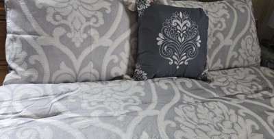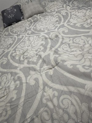 You are sure to enjoy this beautiful oversized damask pattern with its intricate weaves and tonal hues, it will add class to any room setting. The neutral color of this airjet jacquard woven comforter set makes it easy to drop into a variety of room settings and look right at home. The decorative pillows add to the value of the set with embroidery, tassels and quilting. The 5pc set includes a comforter, 2 shams and 2 decorative pillows.