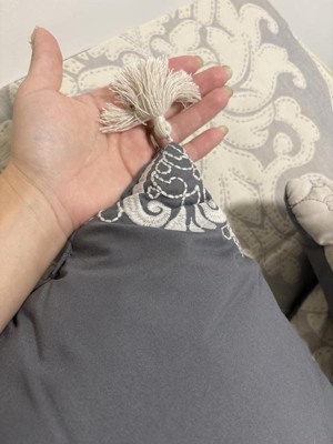 I adore the colors and texture of this comforter set. It is very elegant without being over the top, the material is lovely and soft with a beautiful design and contrasting fabrics. There are no seeming issues, and the edging is beautifully done. The pillows have tassels.