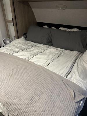 Truly a perfect all in one set for your bedding needs. It’s a great quality set of a queen comforter, 2 shams, 2 euro shams, 2 decorative pillows, and a bed skirt. The design is clean and simple with wonderful embroidery work and the fabric is soft and gentle, making it feel extra cozy. It’s a lovely set; I can see this making a great gift as well. Highly recommend!